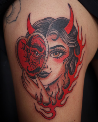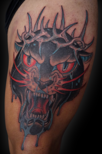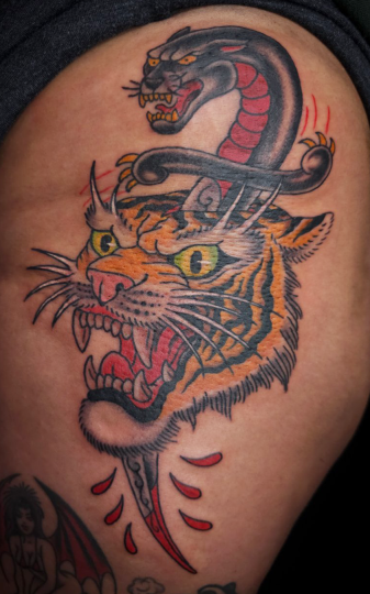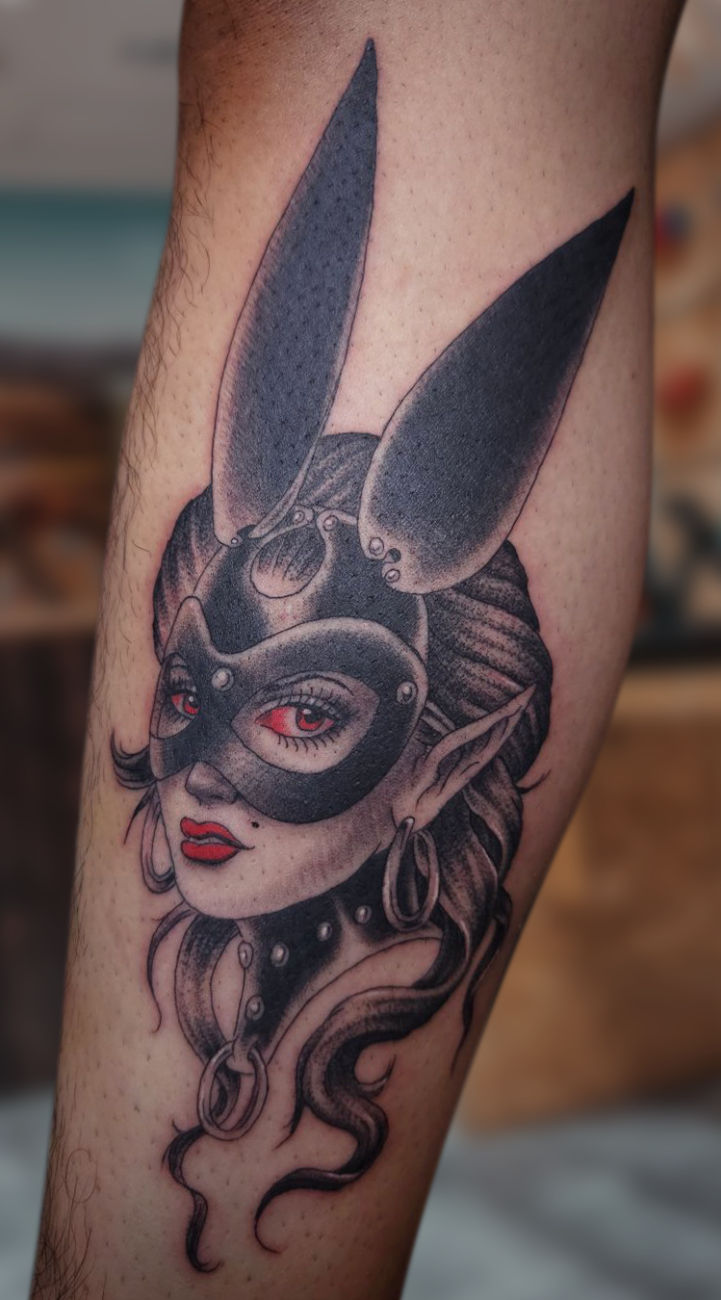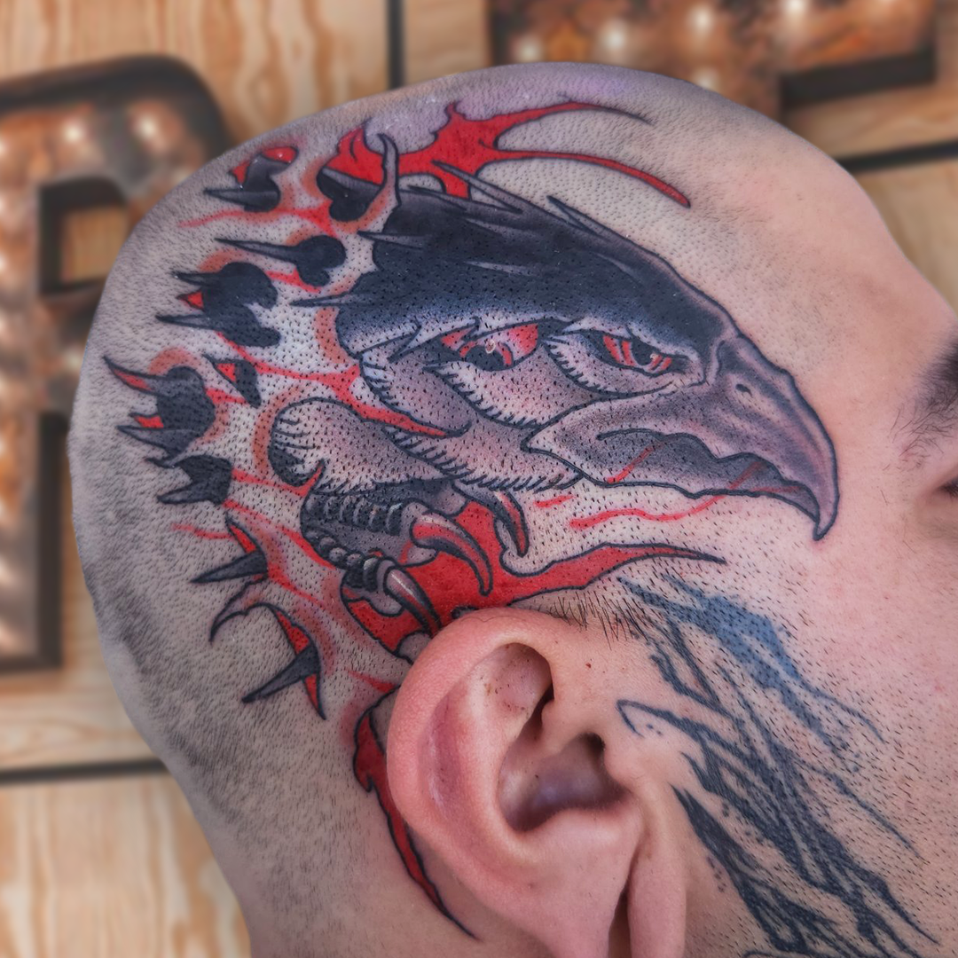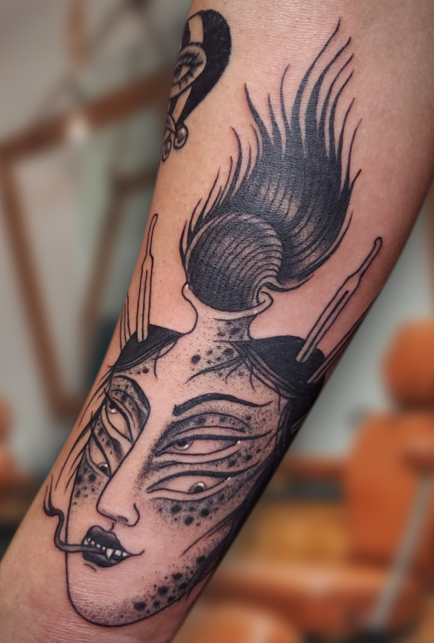 While his expertise spans across various tattoo styles—American traditional, black and grey, and beyond—his true love lies in tattoos that tell a story and showcase the strength of the imagery. He believes tattoos are powerful tools for self-discovery and expression, and that’s something he wishes everyone understood.
