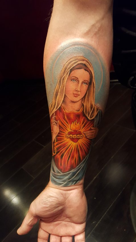 I was working at a different tattoo shop on the strip. I heard there was a shop opening at a casino and no one had done that at the time. When they were accepting portfolios, I thought, that sounds fun and crazy. Carey Hart and John Huntington looked at my work. They hired me and I was right, it was fun and crazy. The best experience was when we did the show Inked. I got to tattoo my mom and dad on TV. That was special. Especially since my dad passed away, the footage of that is even more precious for me.