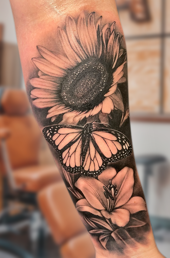 Black & Gray tattoos look like pencil or pen-and-ink drawings with various line weights, lots of shading and a crazy amount of detail. It’s why this is a tattoo style that only the best tattoo artists can pull off.