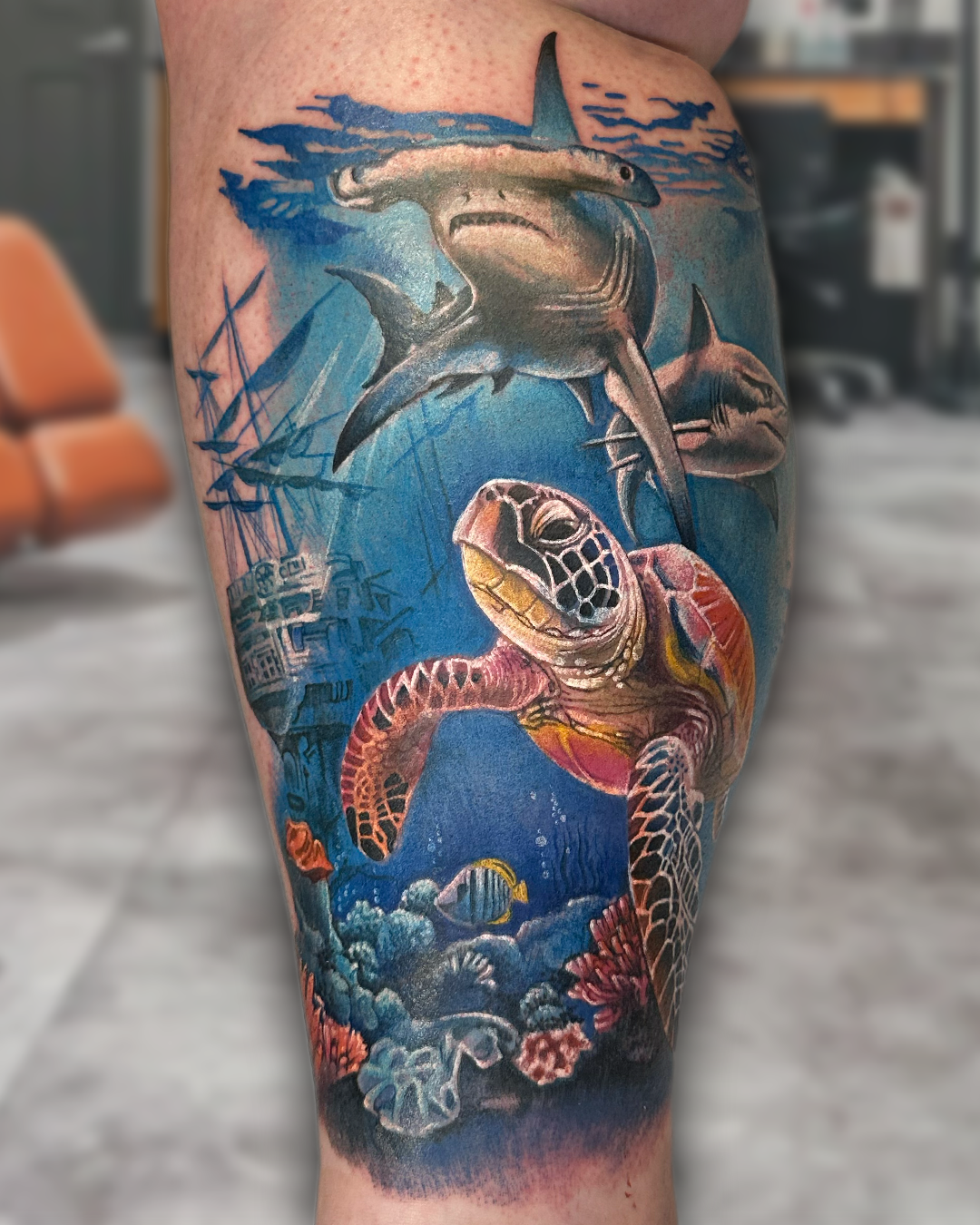 Damien Underwater Turtle Shark Tattoo