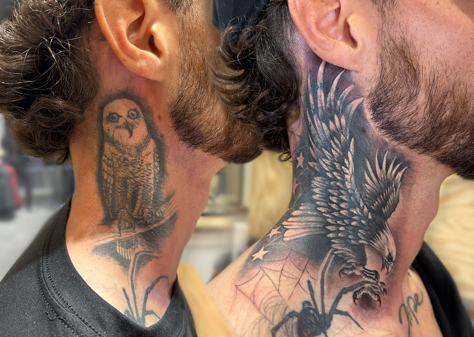 Damien Wickham Owl Eagle Cover Up Neck Tattoo