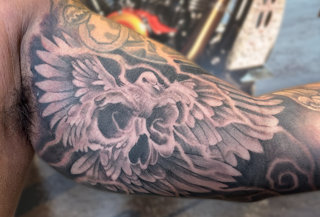 Black and Gray, Skull, Animal, Surrealism tattoo