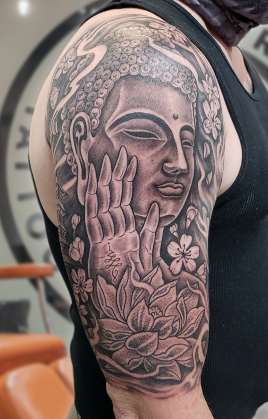 Many Japanese tattoos are done on large portions of the body. Full or half sleeves that often wrap around the chest are very common.