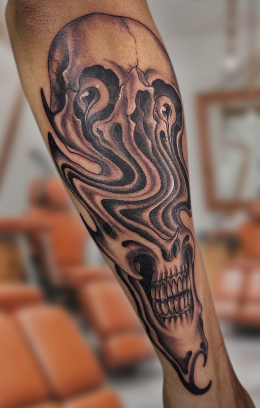 Black and Gray, Abstract, Surrealism, Skull tattoo