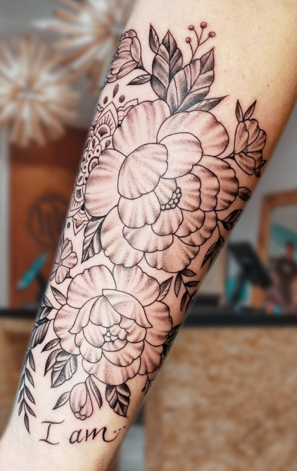 Black and Gray, Linework, Flower, Fine Line tattoo