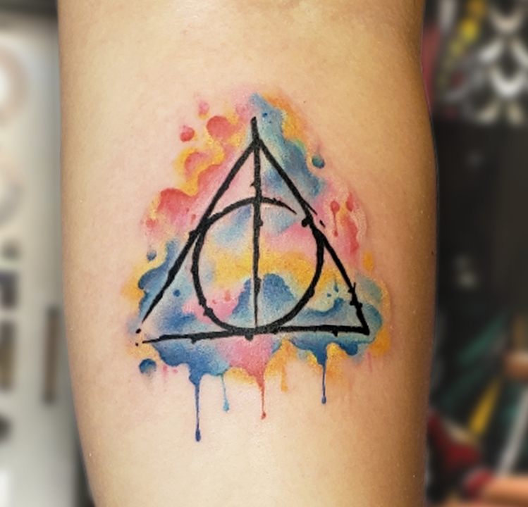 Lacey McClellan Deathly Hallows Harry Potter Watercolor Tattoo