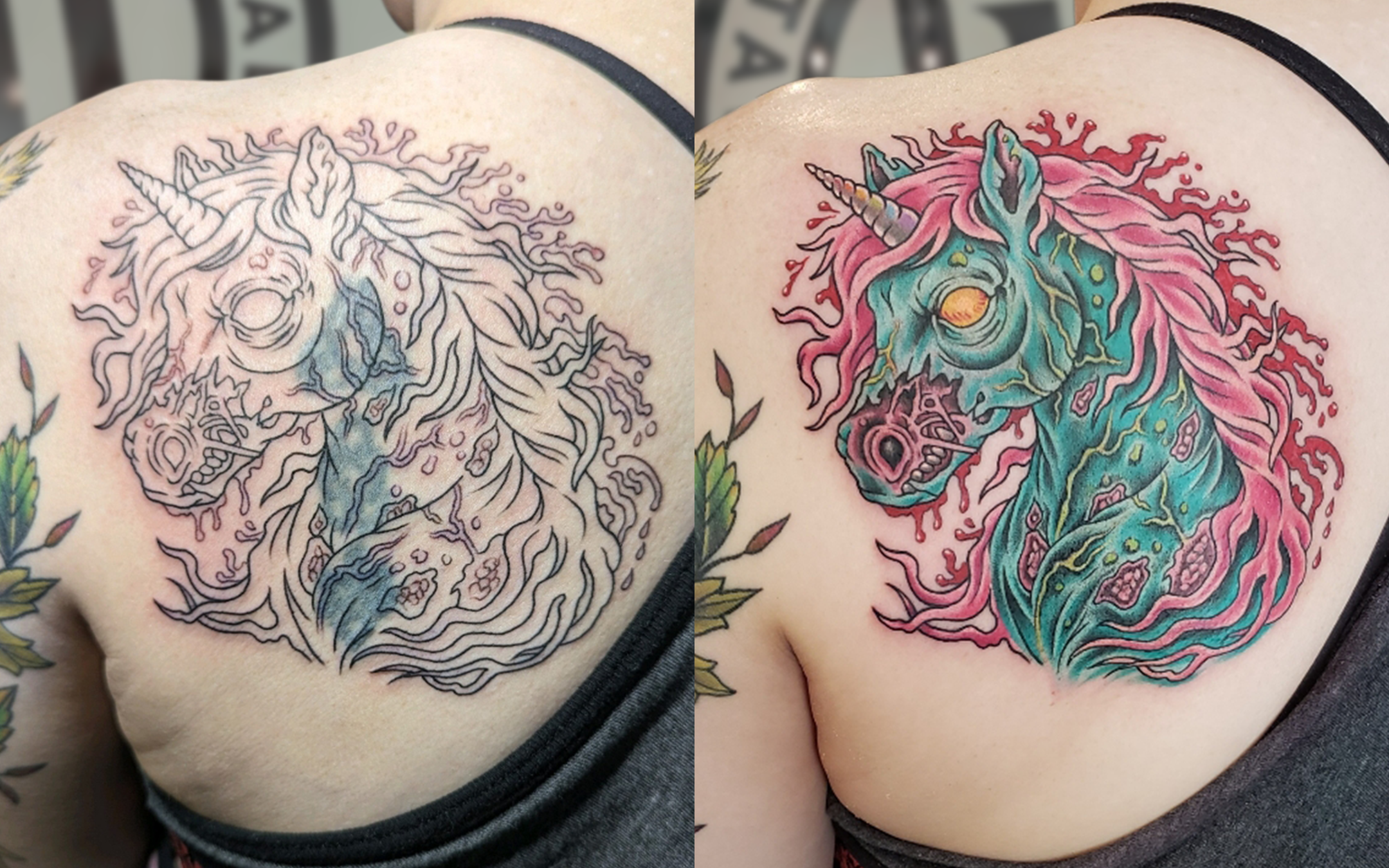 Lacey McClellan Zombie Unicorn Coverup Tattoo