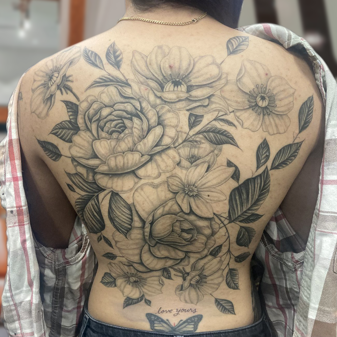 Black and Gray, Flower tattoo
