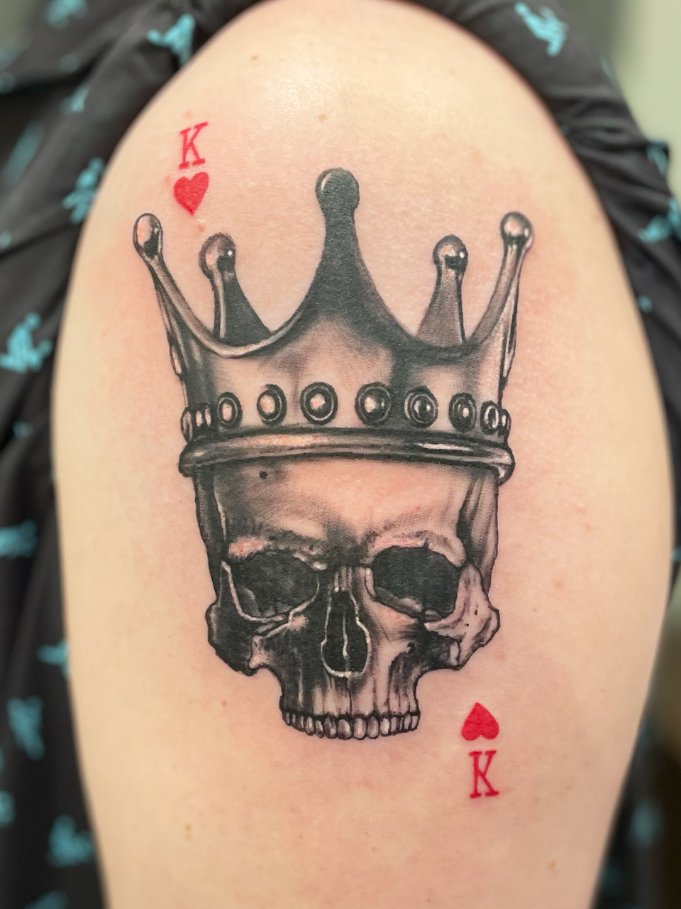 VRod skull king of hearts crown tattoo